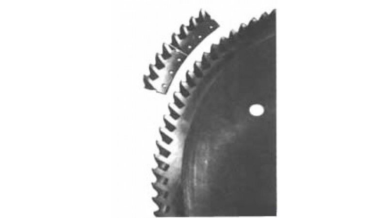 Сегменты пилы изготавливаются сварными: крепежная часть из стали марки ст45, а рабочая часть из быстрорежущей стали марки Р6М5.