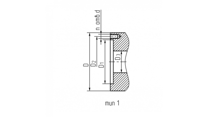 Тип 1 – с цилиндрическим центрирующим пояском и с креплением через промежуточный фланец по ГОСТ 3889