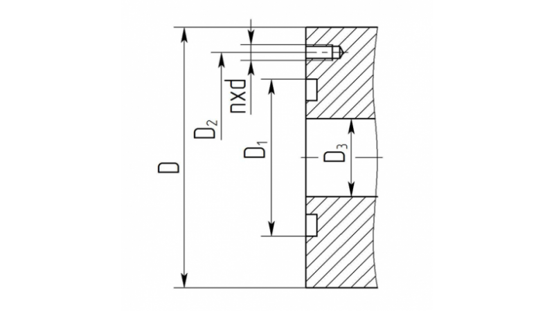 Тип 1 – с цилиндрическим центрирующим пояском и с креплением через промежуточный фланец по ГОСТ 3889