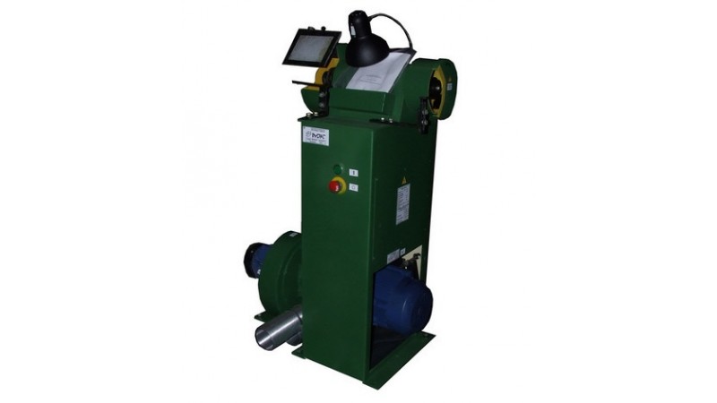 Оборудован устройством автоматического отключения привода шлифовальных кругов при откидывании защитного экрана.